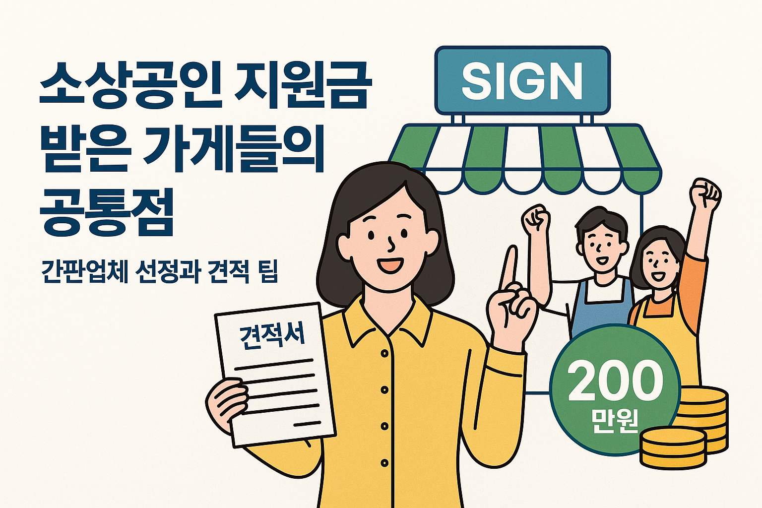 2025년 하나은행 소상공인 지원사업에서 200만원 정산을 성공적으로 받은 자영업자들의 공통점은 ‘준비된 견적과 시공 계획’에 있습니다. 서류만 깔끔히 준비한다고 끝나는 것이 아니라, 업체 선정과 견적 구성의 전략이 실제 지급 금액을 좌우합니다.